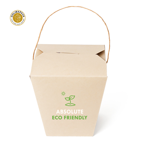 OOLIMA Boîte à nouilles en papier de bambou écologique avec poignée en papier-Boîte à nouilles en papier de bambou pour aliments à emporter